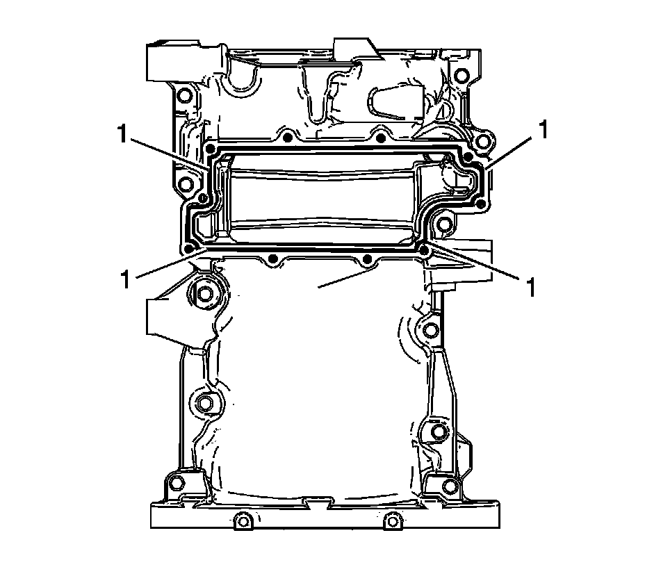 1. Place a 3 mm (0.118 in) bead of RTV sealant, GM P/N 12378521 (Canadian P/N 88901148) or equivalent, on the skid plate mounting surface (1).