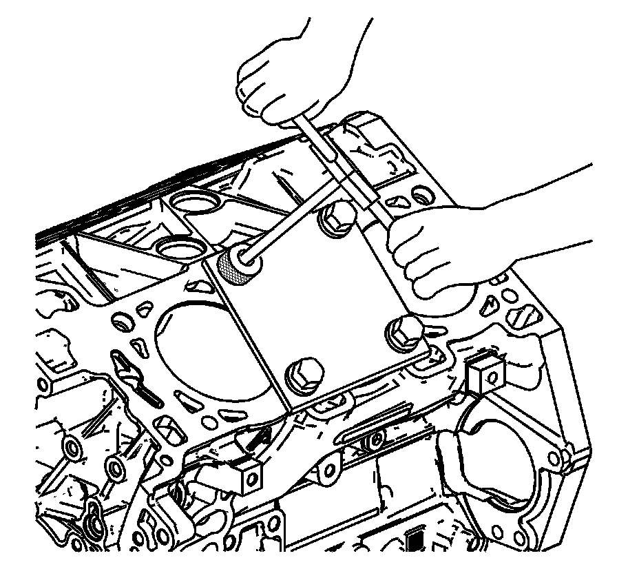 13. Spray cleaner into the tapped hole. Refer to Adhesives, Fluids, Lubricants, and Sealers (Adhesives, Fluids, Lubricants, and Sealers) for recommended cleaner.