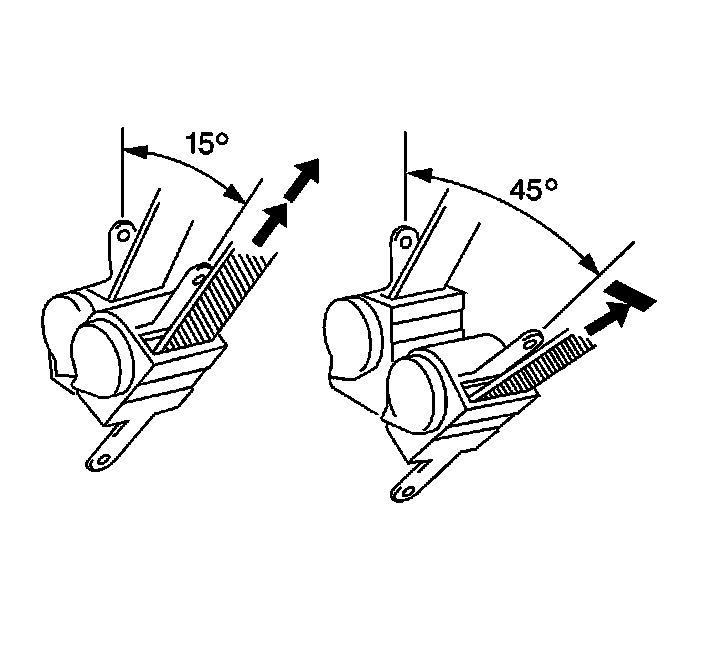 3. Ensure that the seat belt webbing can be pulled from the retractor at an inclination of 15 degrees or less and cannot be pulled from the retractor at an inclination of 45 degrees or more.