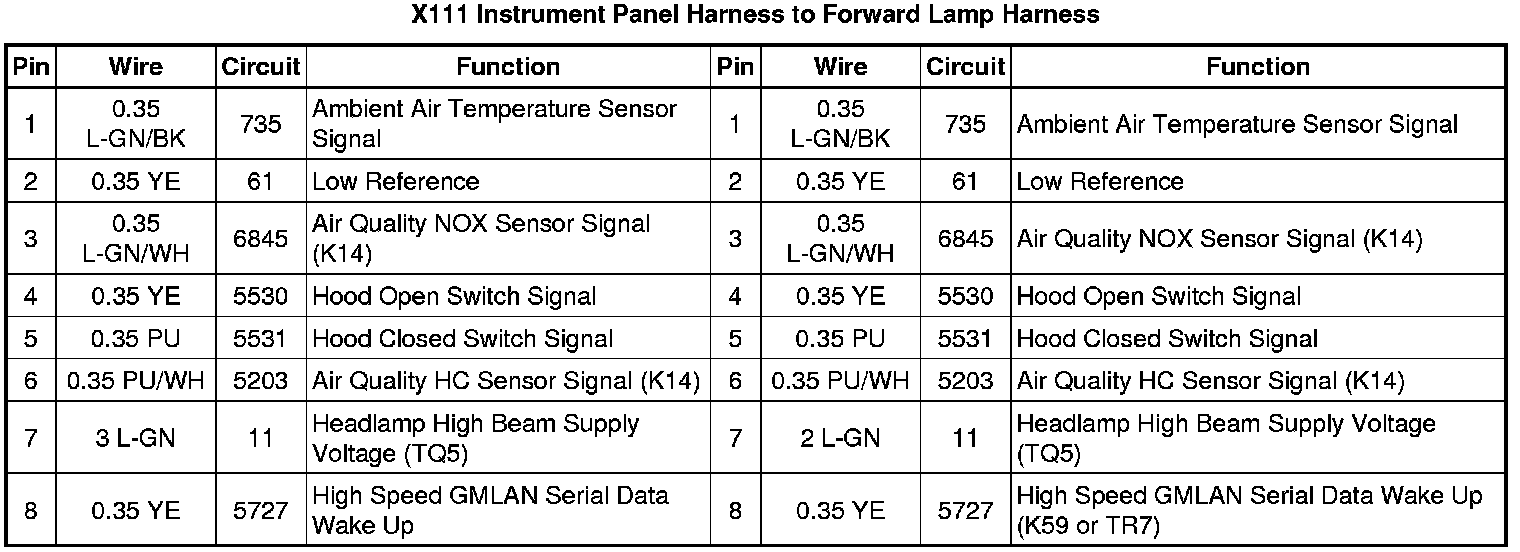 X111 Instrument Panel Harness to Forward Lamp Harness
