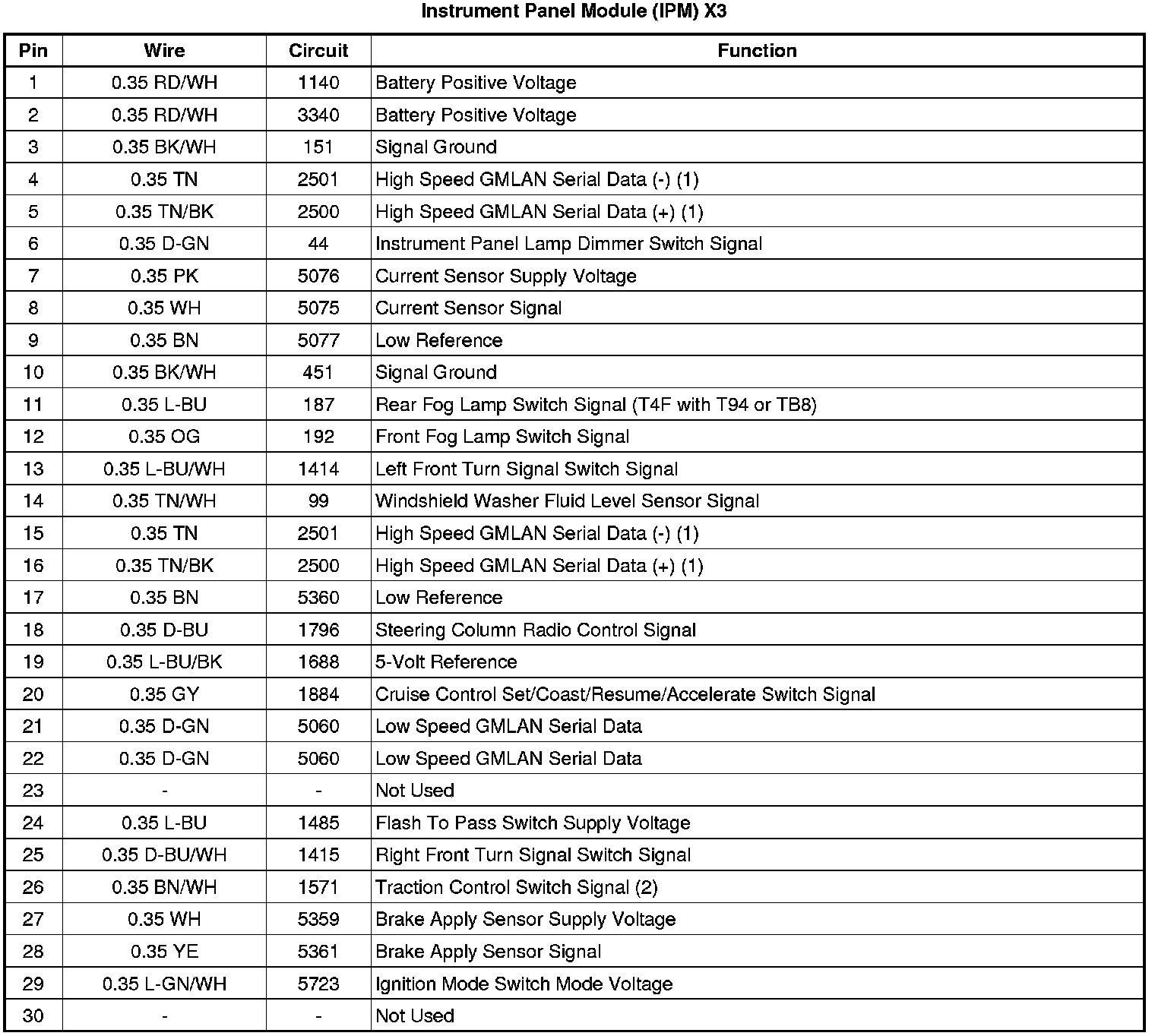 Instrument Panel Module (IPM) X3