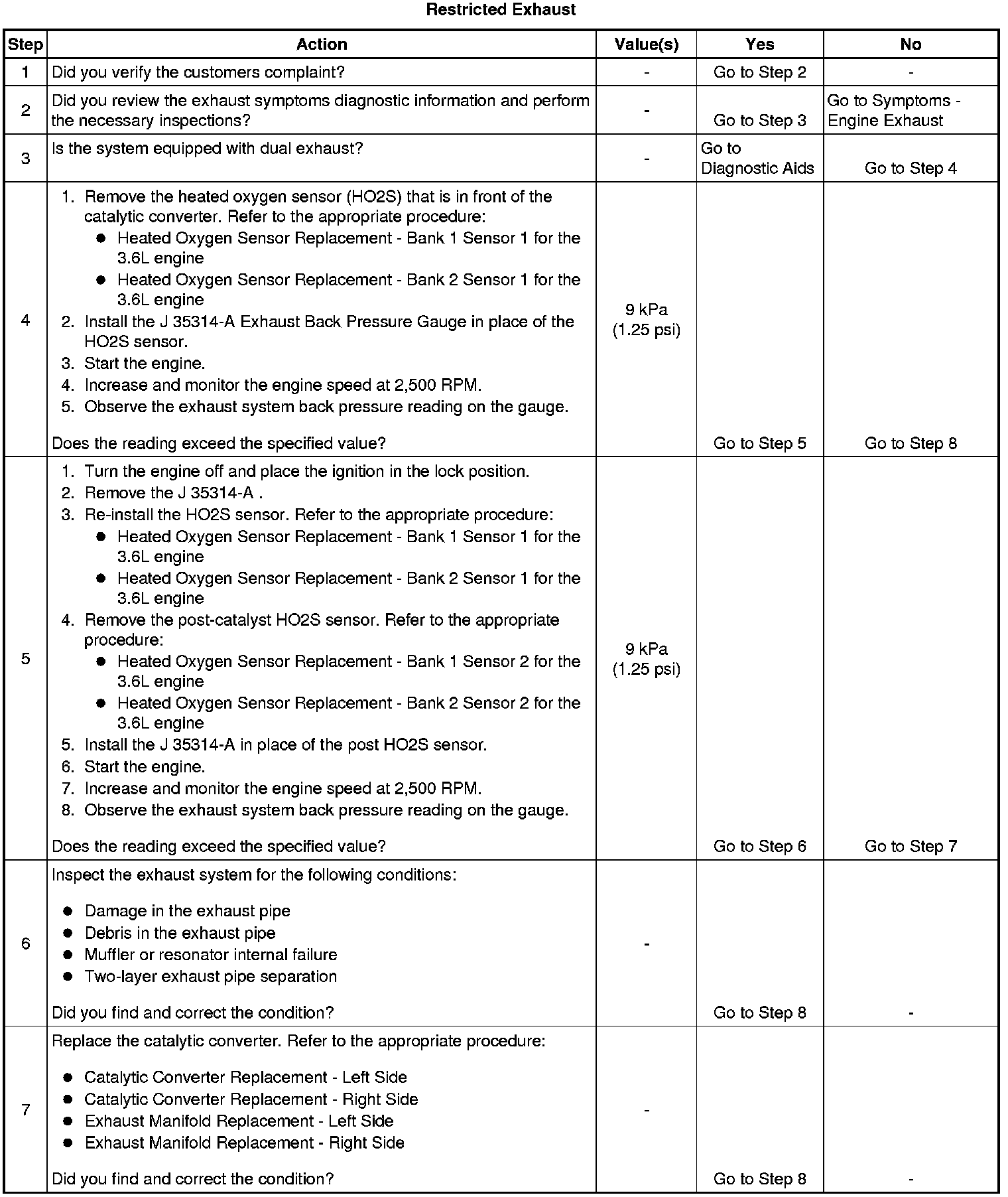 8. Confirming that the condition has been fixed is essential. If the symptom still exists and the vehicle has a dual exhaust system, proceed to step 2 and repeat diagnostic procedure on the opposite exhaust pipe.