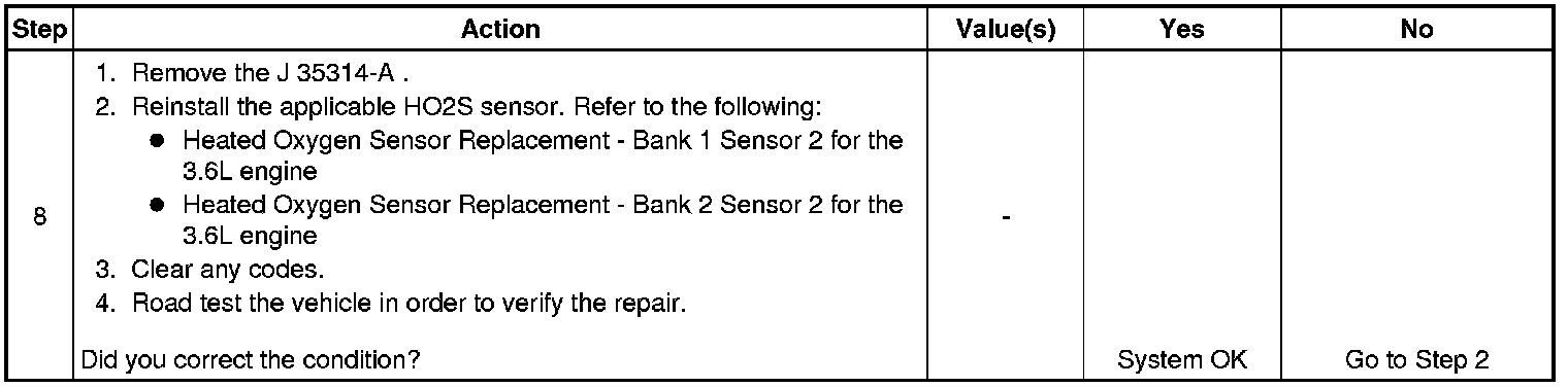 Removing the heated oxygen (HO2S) sensor may set a DTC. When finishing this diagnostic table, be sure to clear all codes.