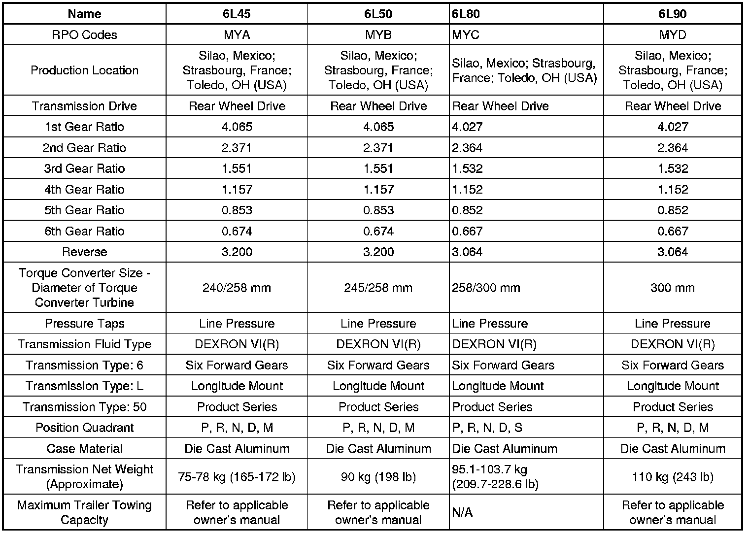 Transmission General Specifications