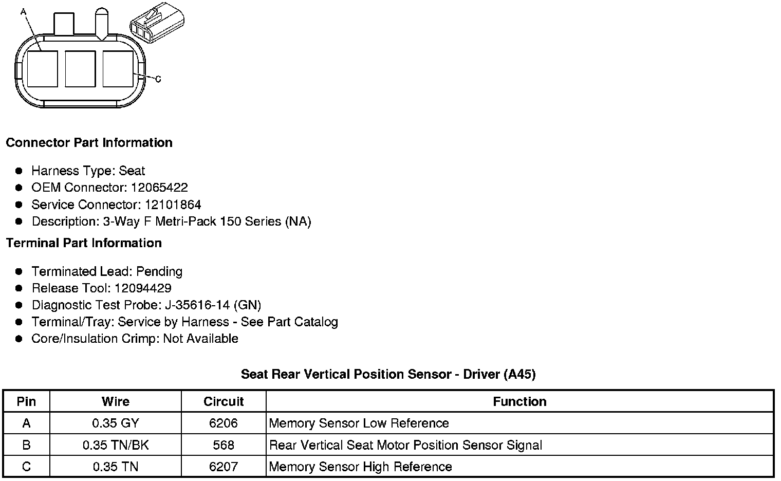 Seat Rear Vertical Position Sensor - Driver (A45)