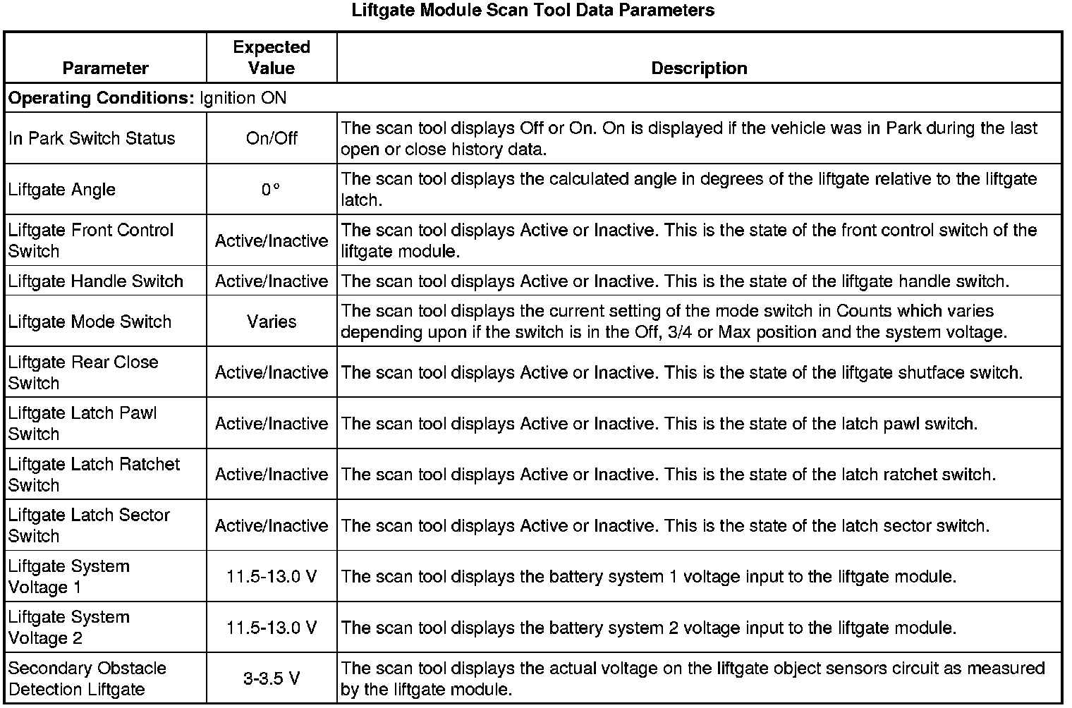 Liftgate Close Actuator Motor Control Module Scan Tool Information