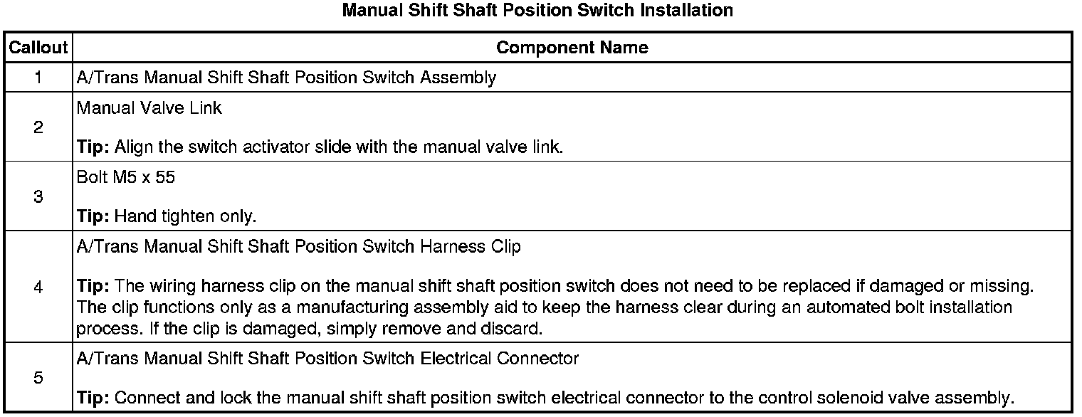 Manual Shift Shaft Position Switch Installation
