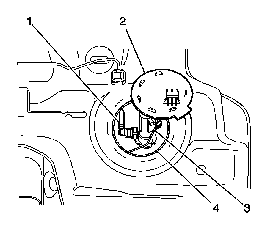1. Remove the fuel tank in order to gain access to the secondary fuel tank module (2). Refer to Fuel Tank Replacement Removal and Replacement.