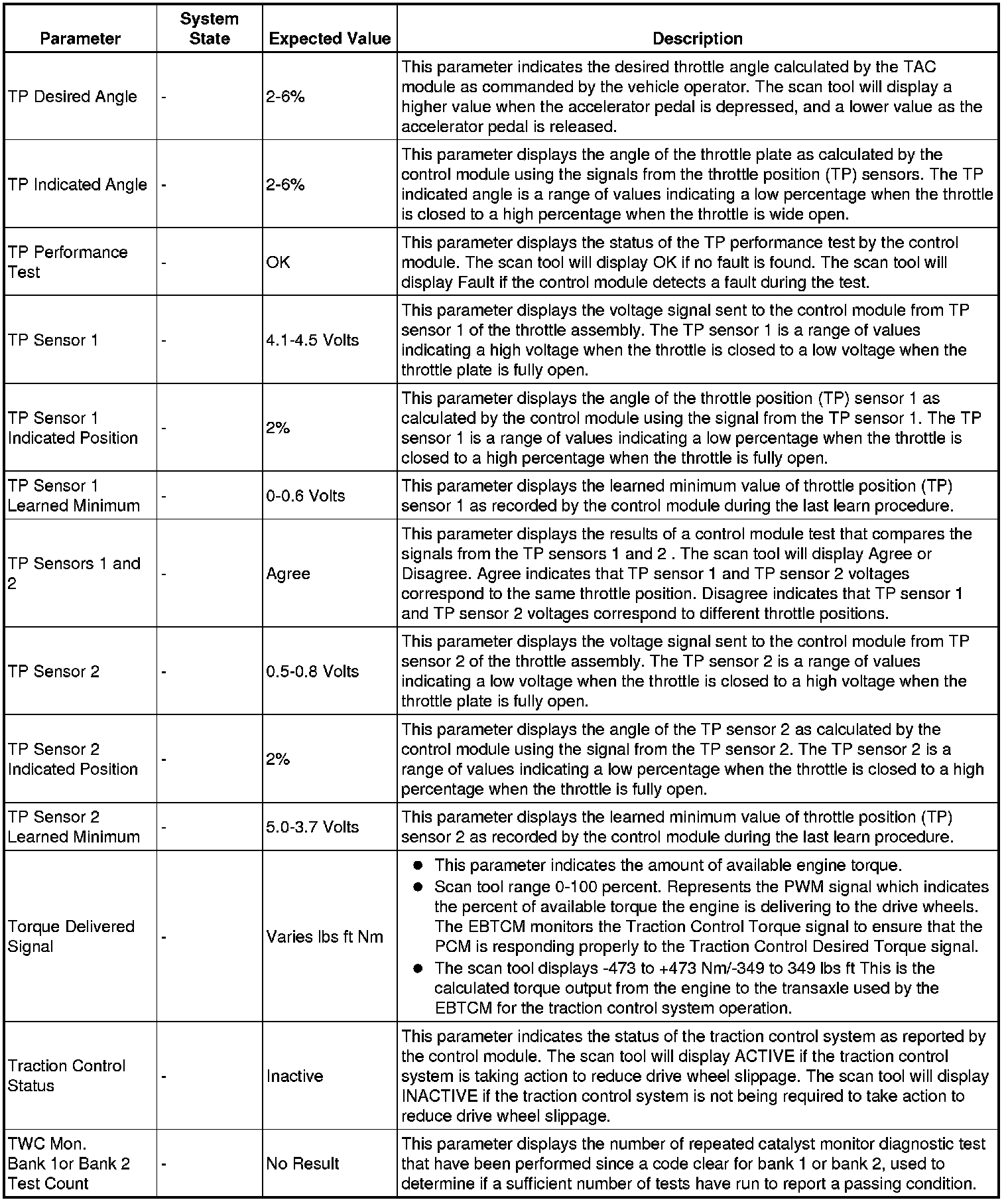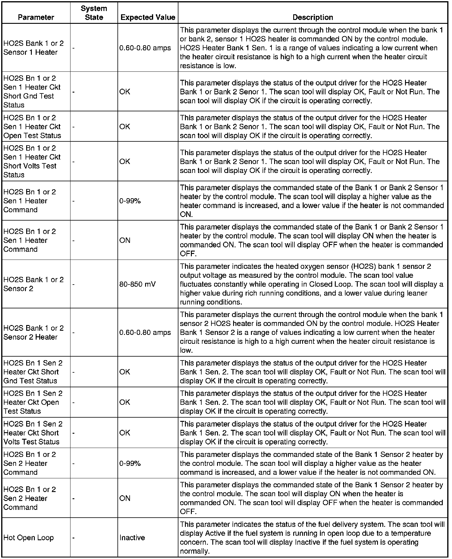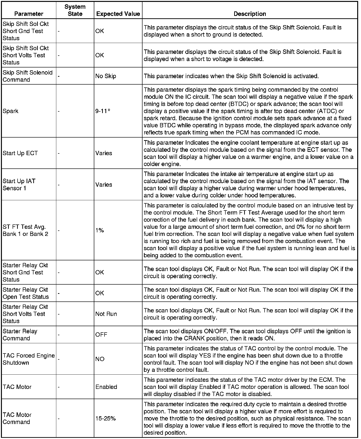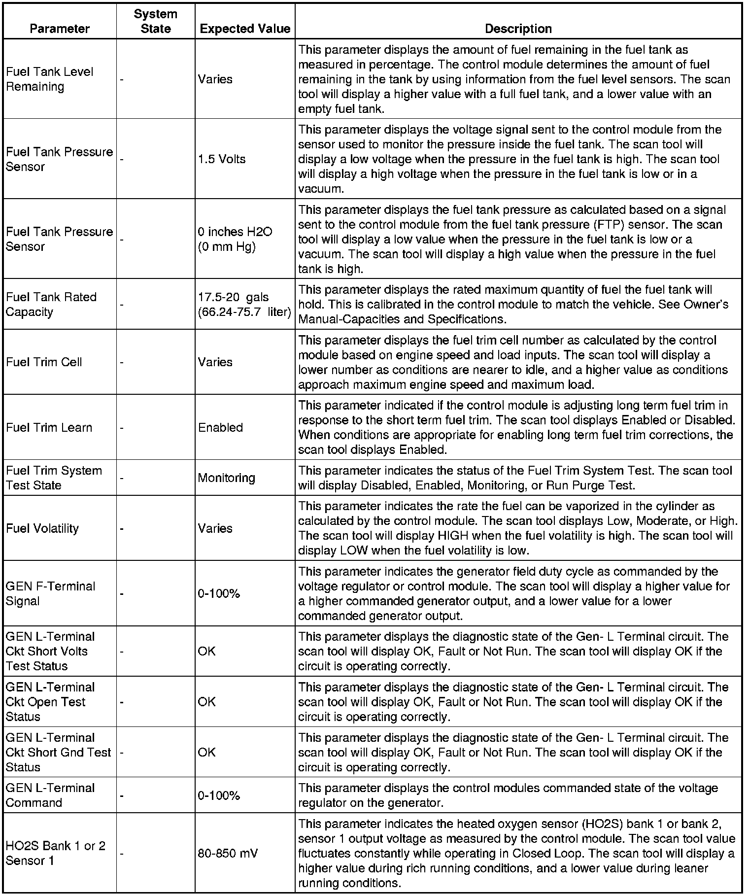 The scan tool values from a properly running engine may be used for comparison with the engine you are diagnosing. The engine scan tool data list represents values that would be seen on a normally running engine.