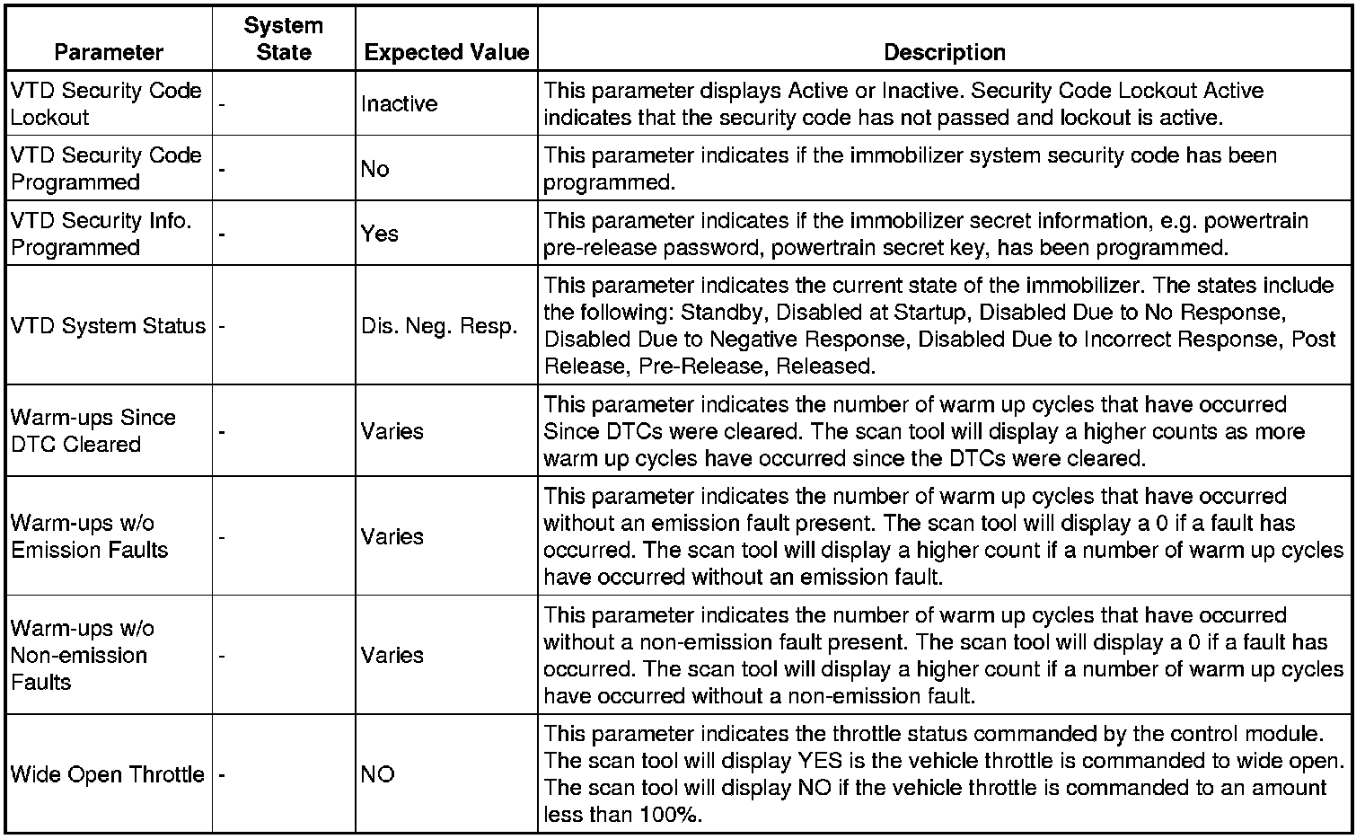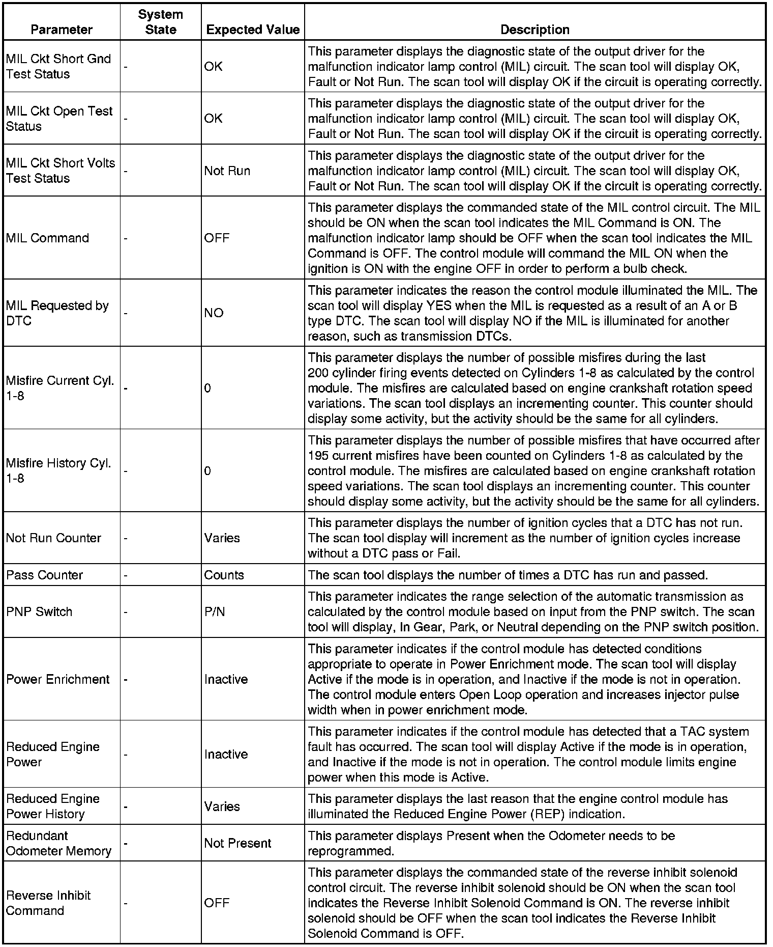 Only the parameters listed below are referenced in this service manual for use in diagnosis.