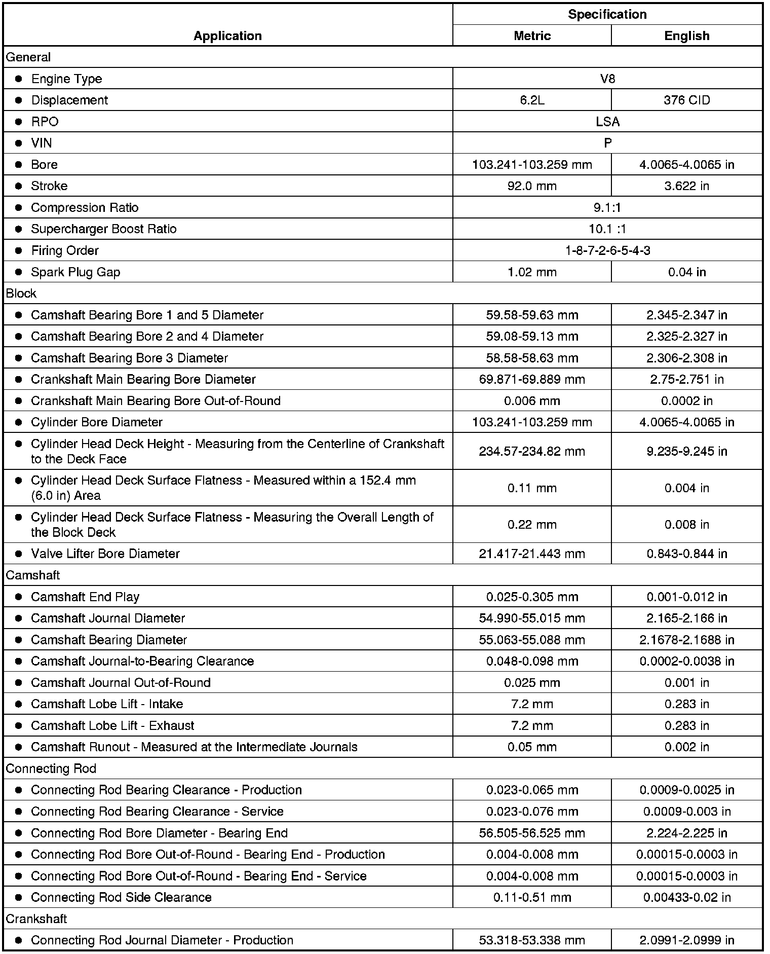 Engine Mechanical Specifications (6.2L LSA)