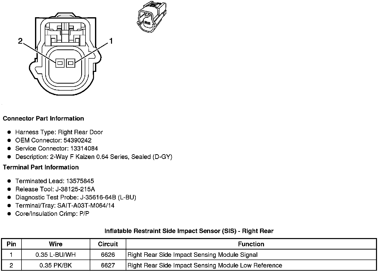 Inflatable Restraint Side Impact Sensor (SIS) - Right Rear