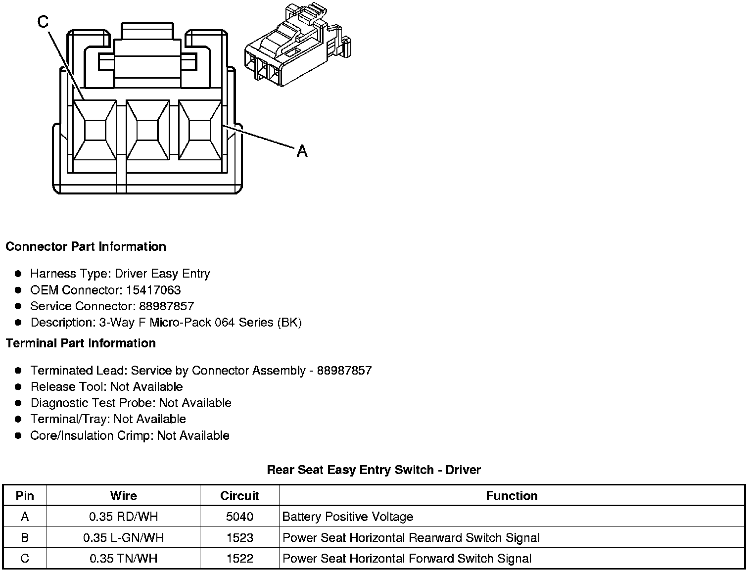 Rear Seat Easy Entry Switch - Driver