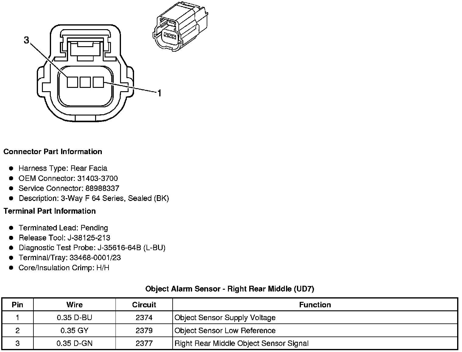 Object Alarm Sensor - Right Rear Middle (UD7)