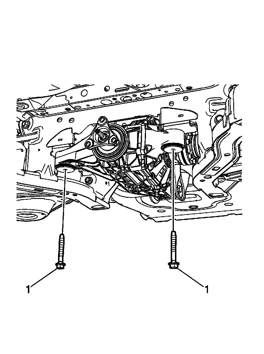 4. Install the rear differential front mounting bolts (1).