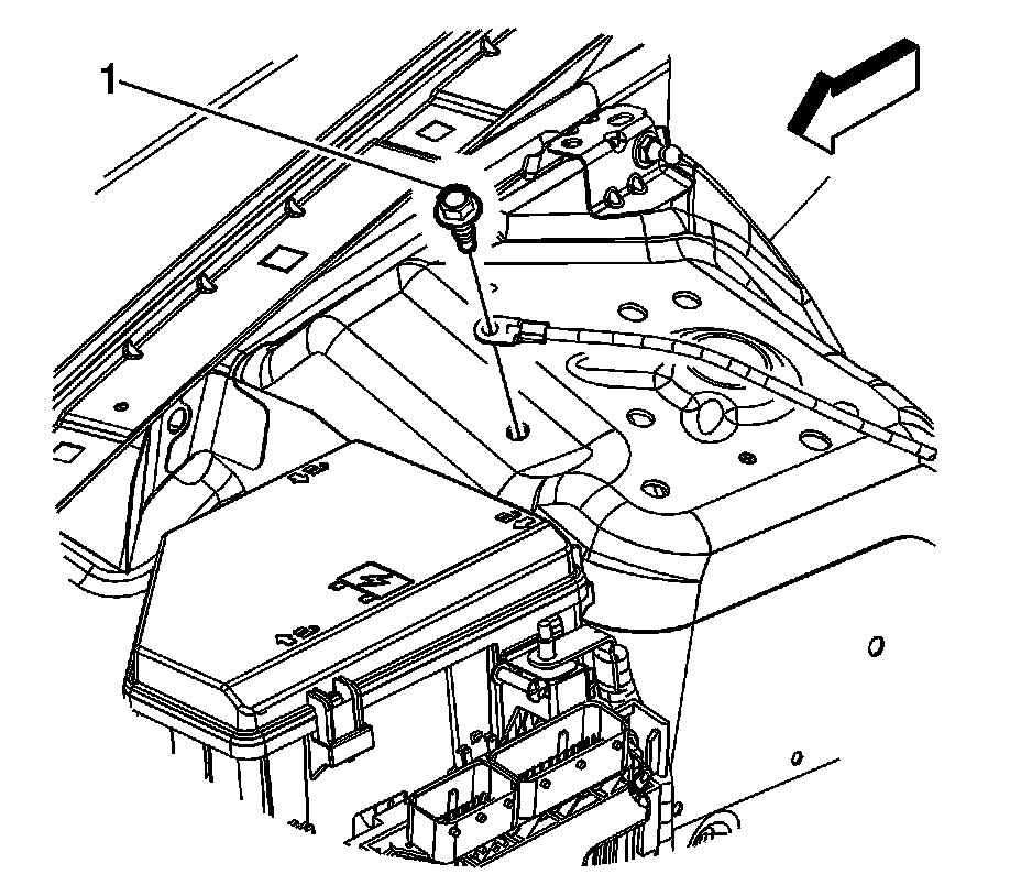 3. Remove the battery negative cable ground bolt (1).