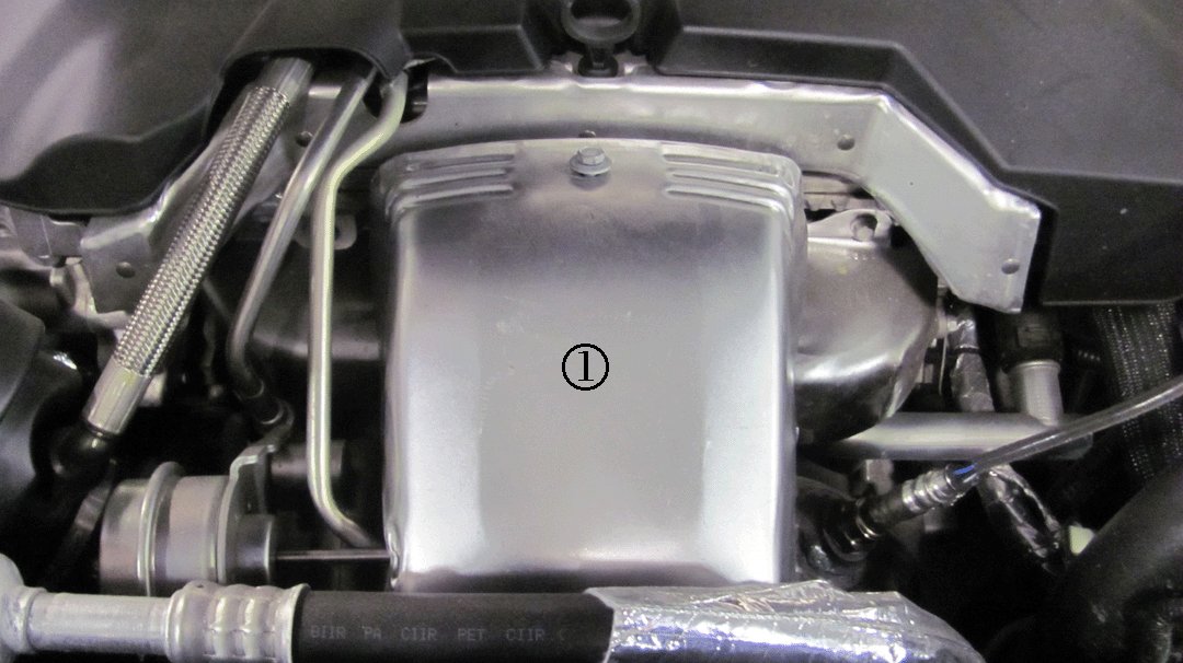 2. Locate the turbocharger exhaust heat shield (1).