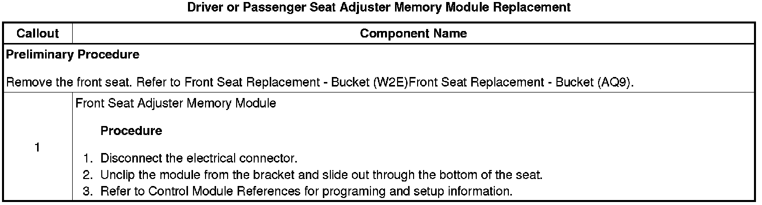 Driver or Passenger Seat Adjuster Memory Module Replacement