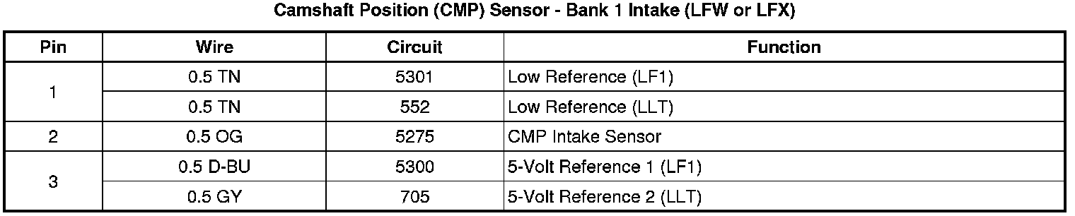 Camshaft Position (CMP) Sensor - Bank 1 Intake (LFW or LFX)