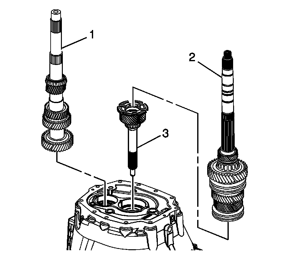 1. The countershaft (1), lifting up the mainshaft (2) enough to remove the countershaft.