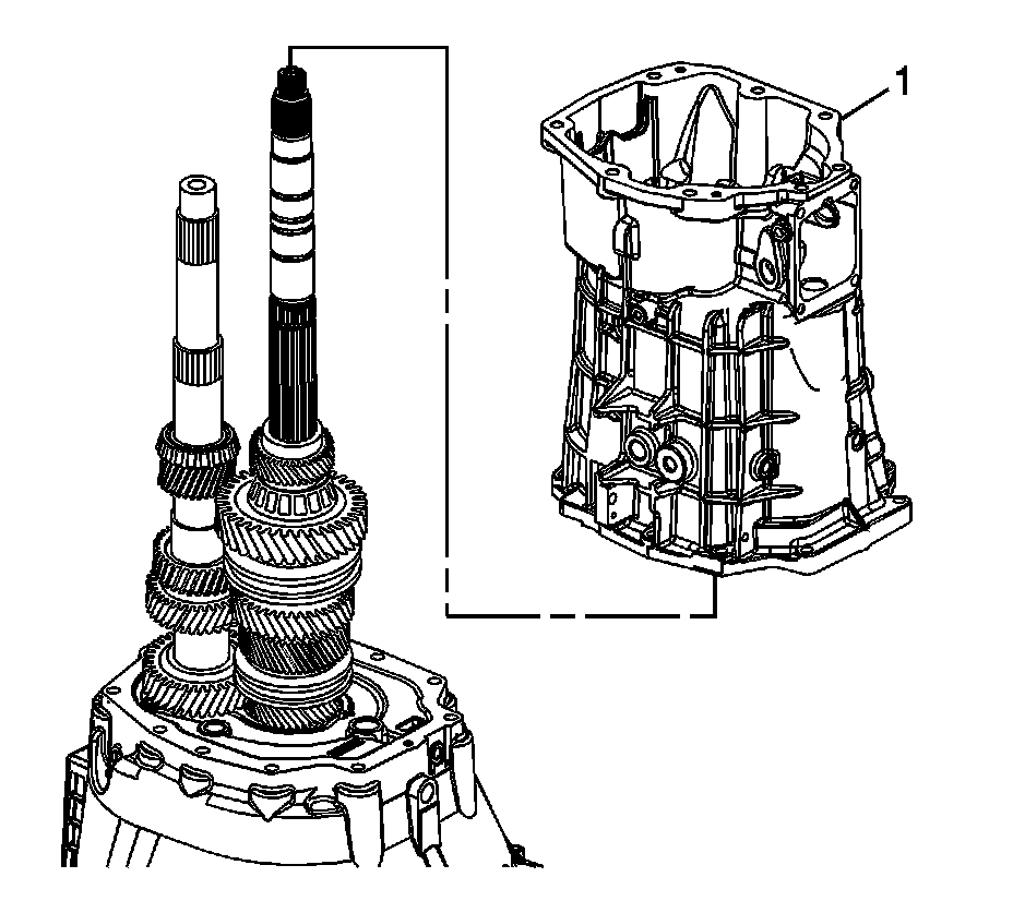 4. The countershaft (1), lifting up the mainshaft enough to install the countershaft.