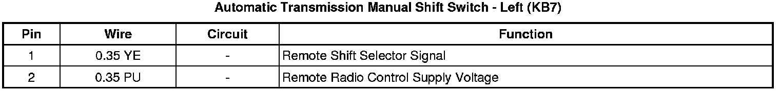 Automatic Transmission Manual Shift Switch - Left (KB7)