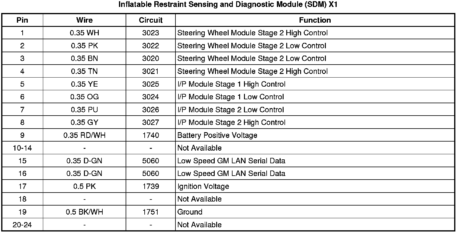 Inflatable Restraint Sensing and Diagnostic Module (SDM) X1