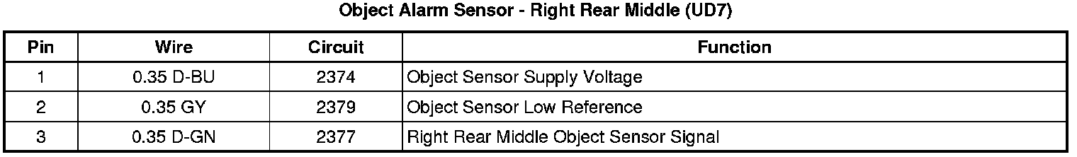 Object Alarm Sensor - Right Rear Middle (UD7)