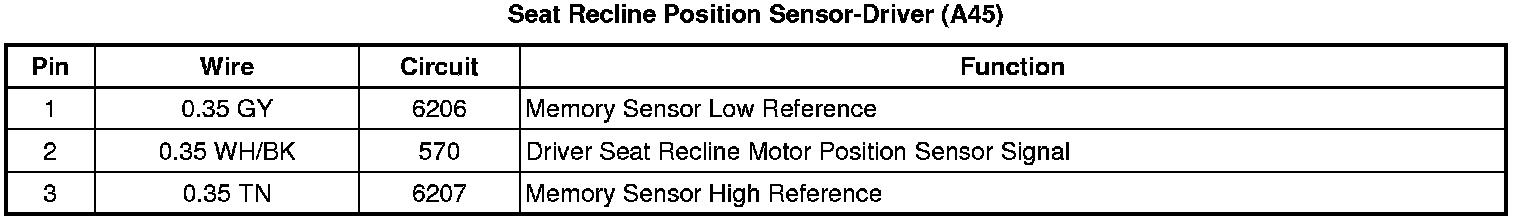 Seat Recline Position Sensor-Driver (A45)