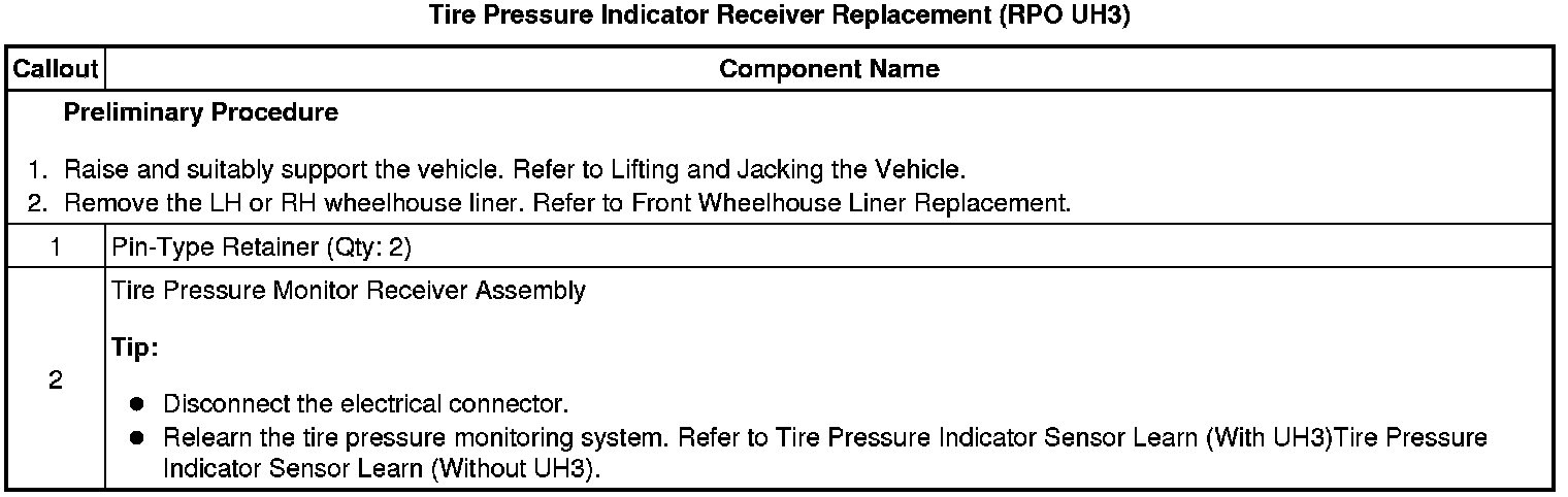 Tire Pressure Indicator Receiver Replacement (RPO UH3)