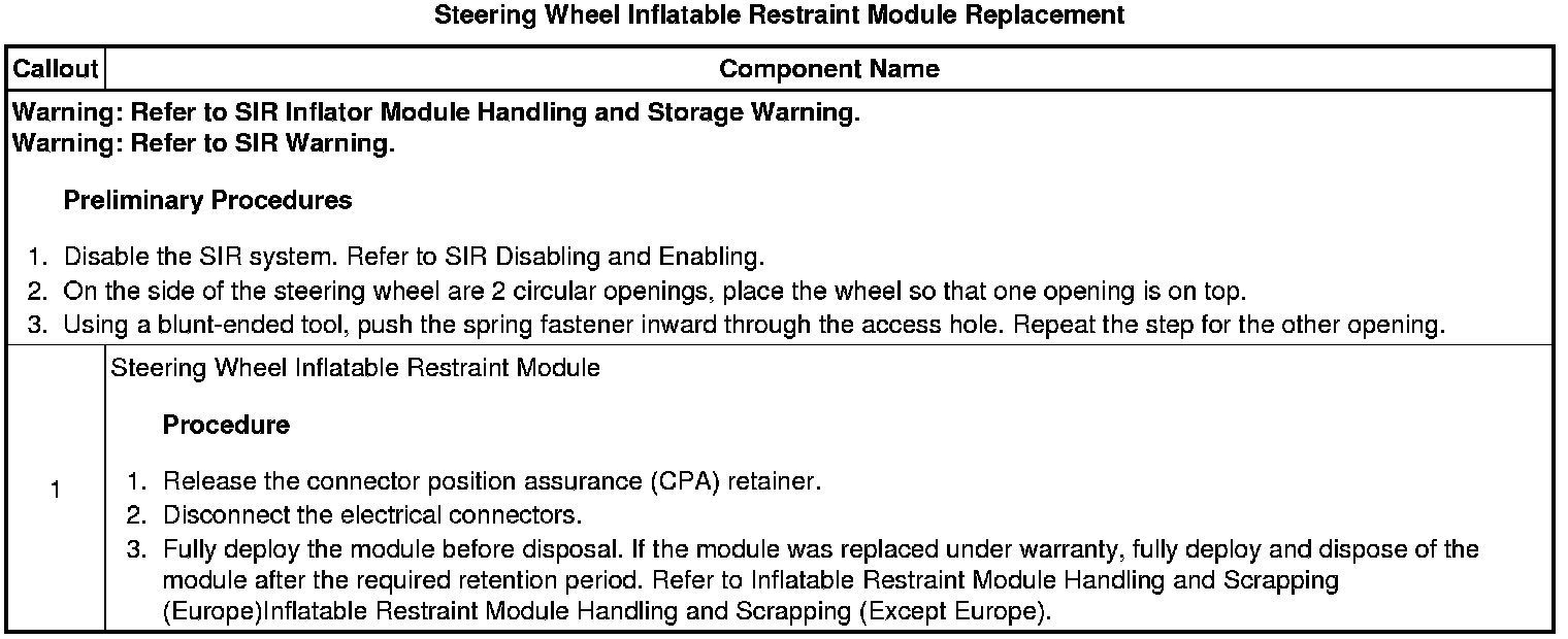Steering Wheel Inflatable Restraint Module Replacement