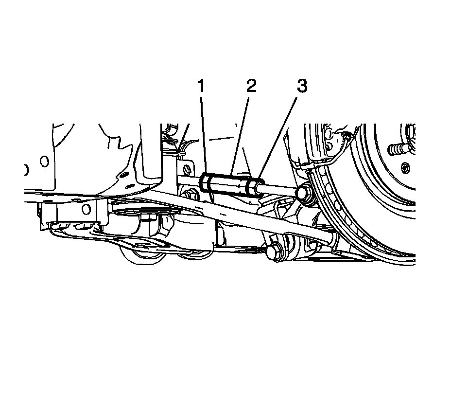 3. Using a backup wrench to hold the rear suspension adjust link (2), tighten the rear suspension adjust link nuts (1) and (3) to 75 Nm (55 lb ft).