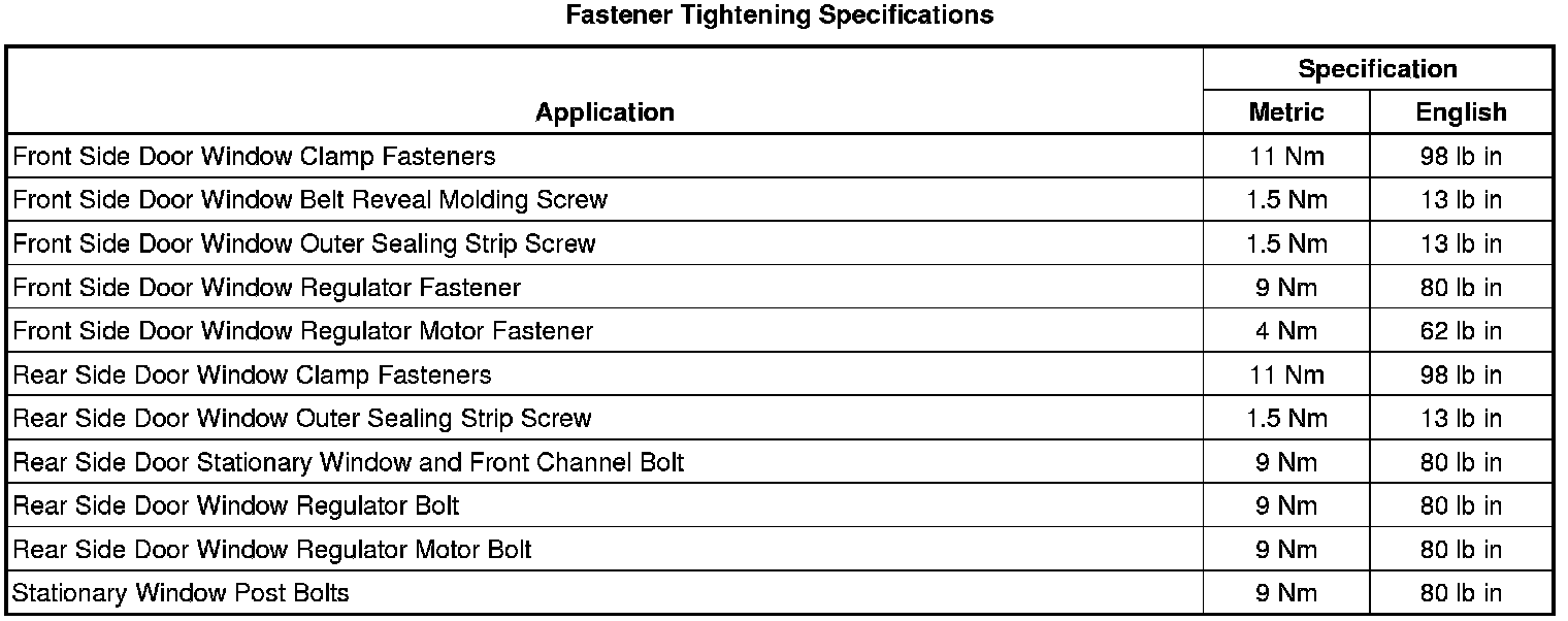 Fastener Tightening Specifications