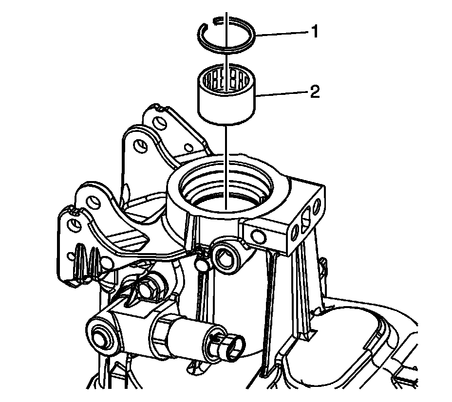 12. Remove the snap ring (1) and the roller bearing (2).