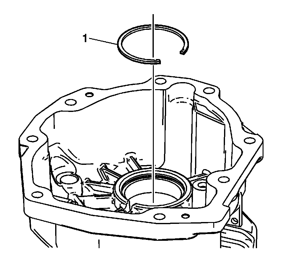 16. Remove the mainshaft bearing race retainer ring (1).