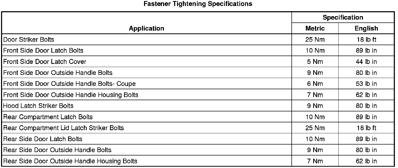 Fastener Tightening Specifications