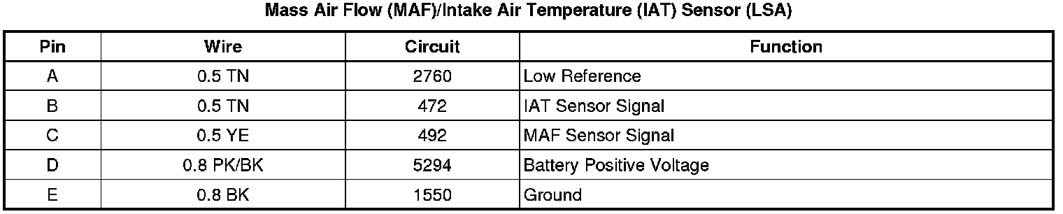 Mass Air Flow (MAF)/Intake Air Temperature (IAT) Sensor (LSA)