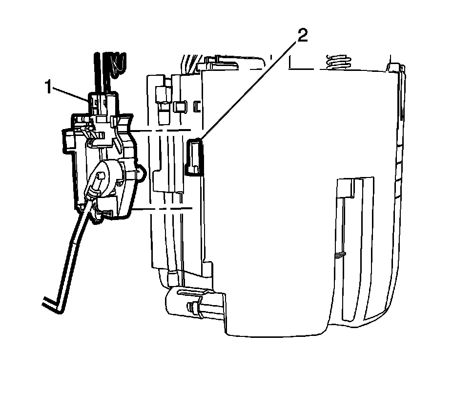 2. Slide the fuel level sensor (1) downward until the locking tab (2) locks into place.