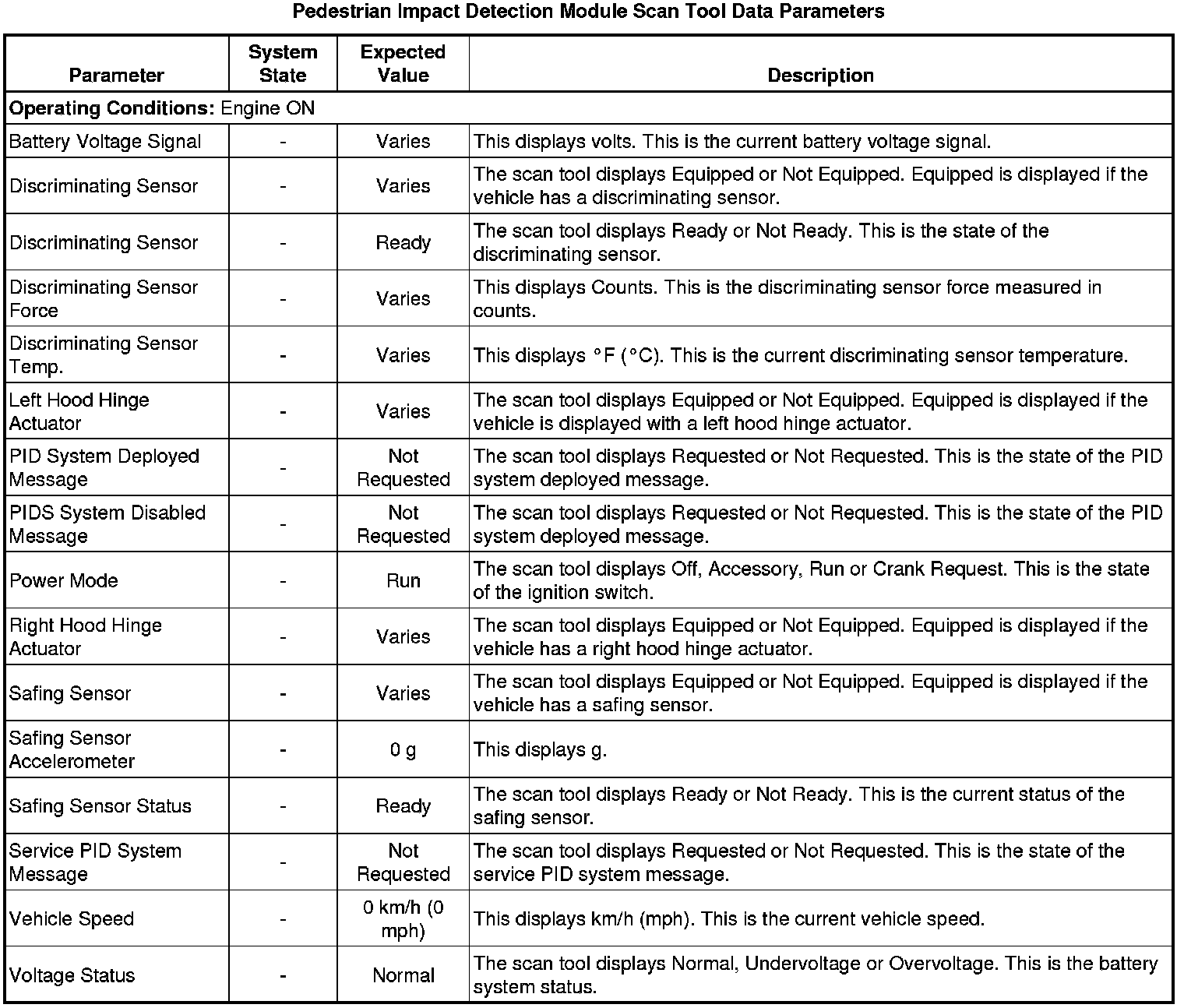 Pedestrian Impact Detection Module Scan Tool Information