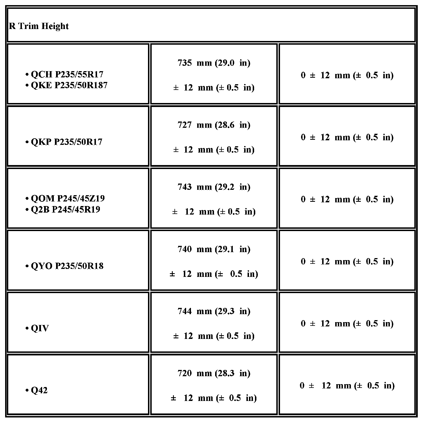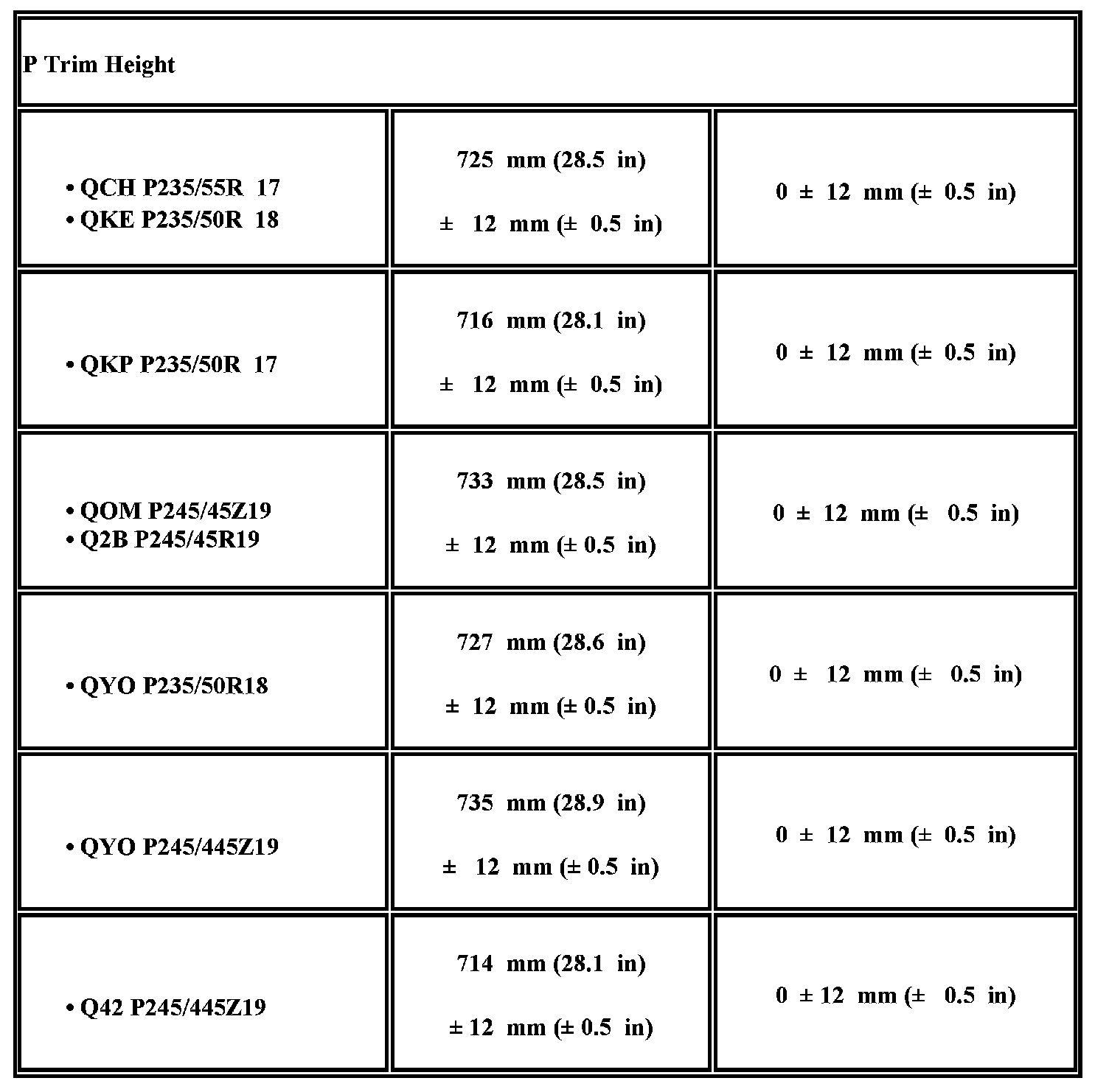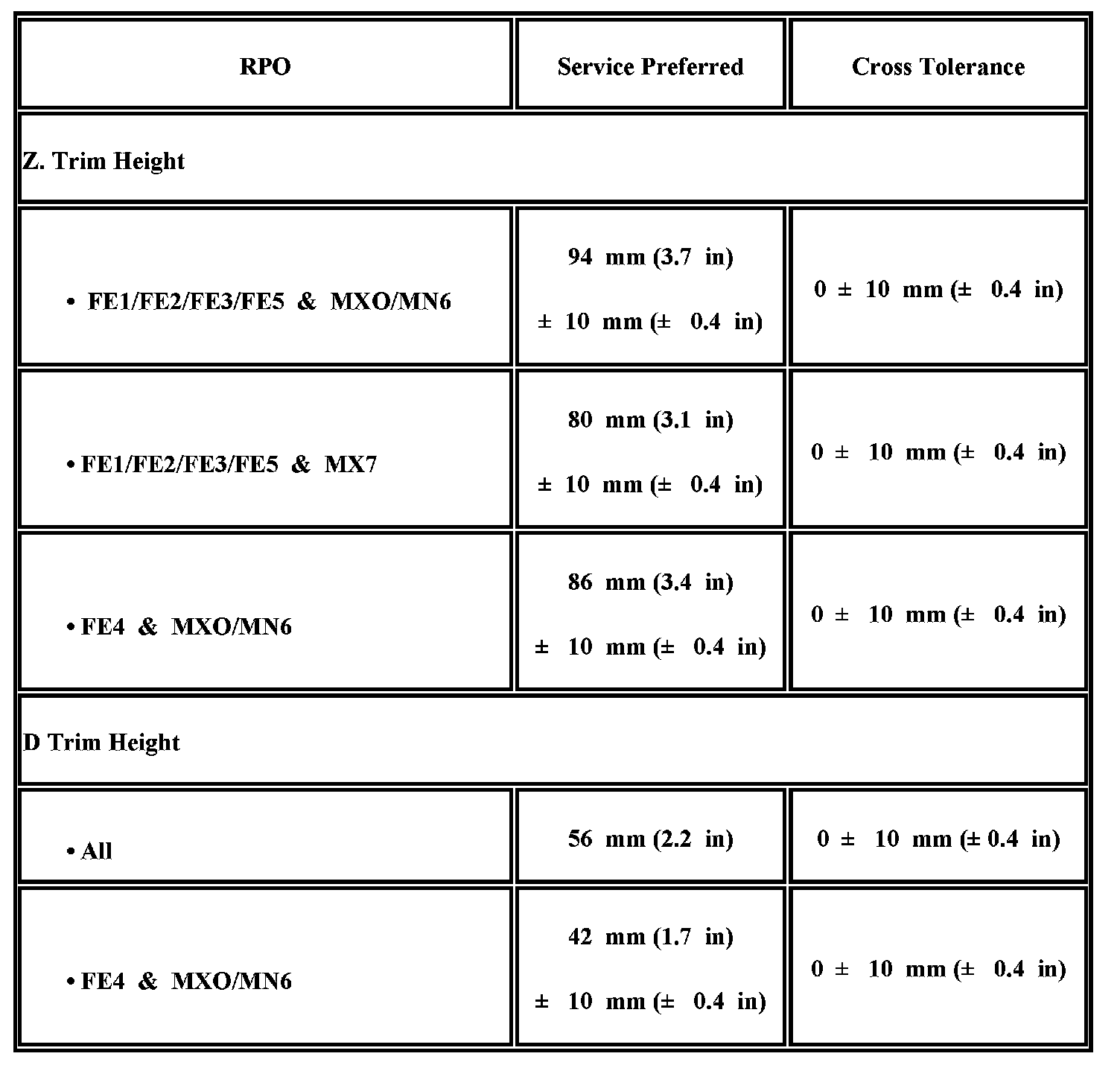Trim Height Specifications