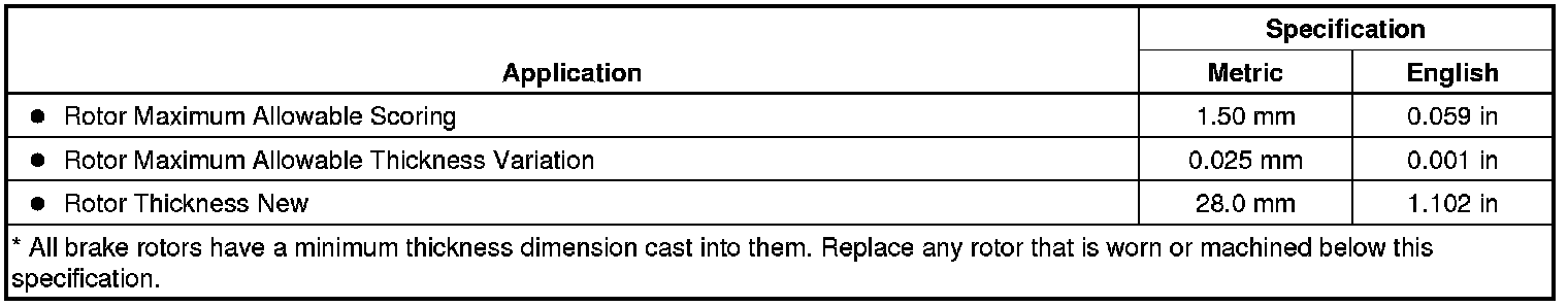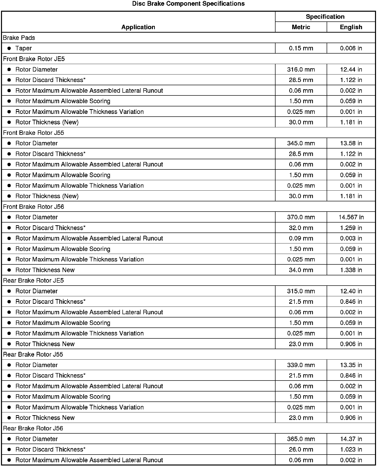 Disc Brake Component Specifications