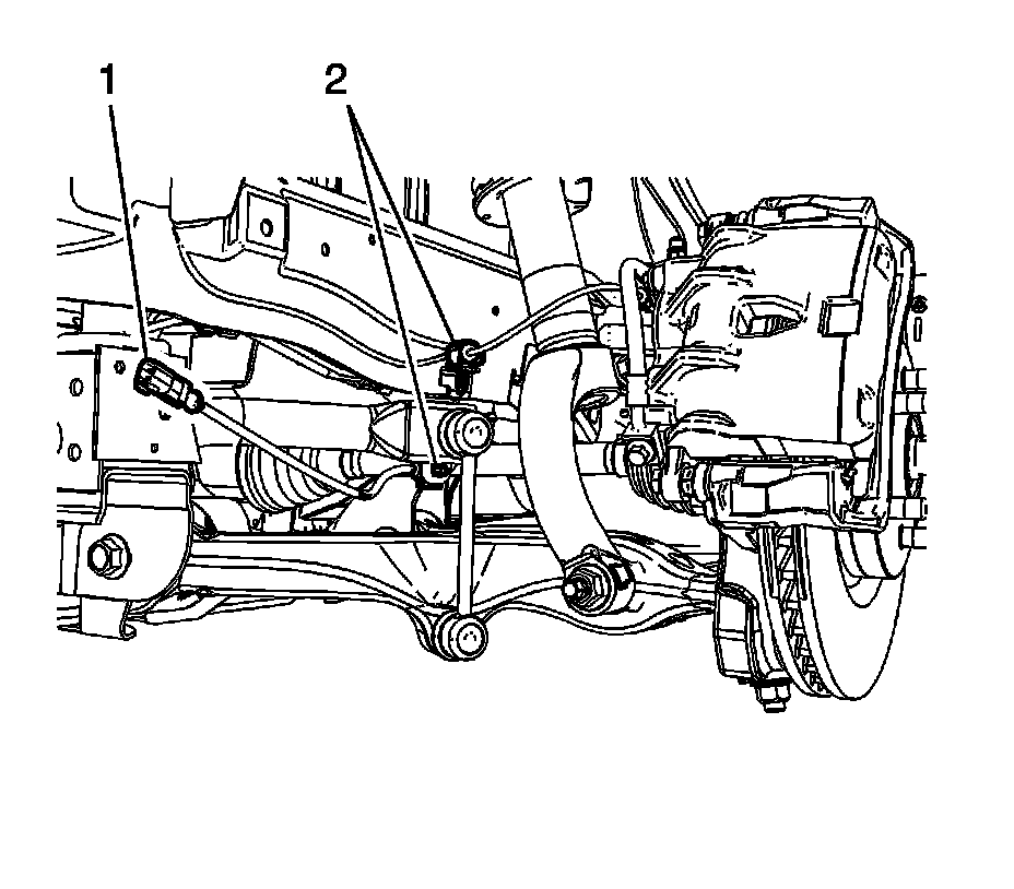 4. Remove the wheel speed sensor wire harness clips (2) from the stabilizer bar bracket.
