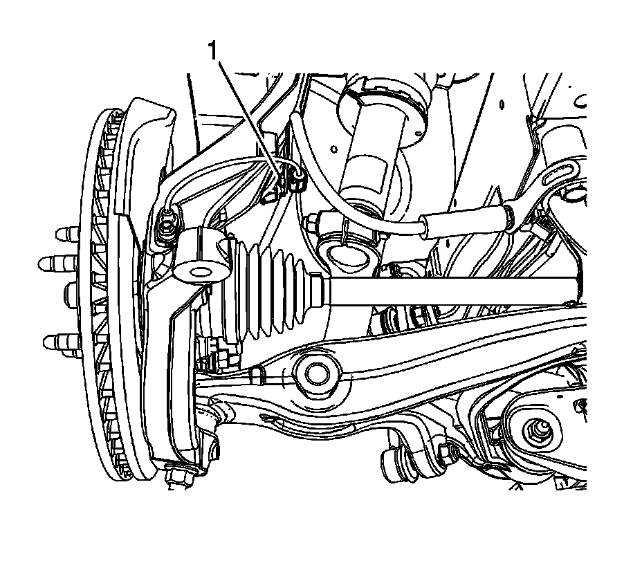 2. Install the wheel speed sensor bolt (1) and tighten to 9 Nm (80 lb in).