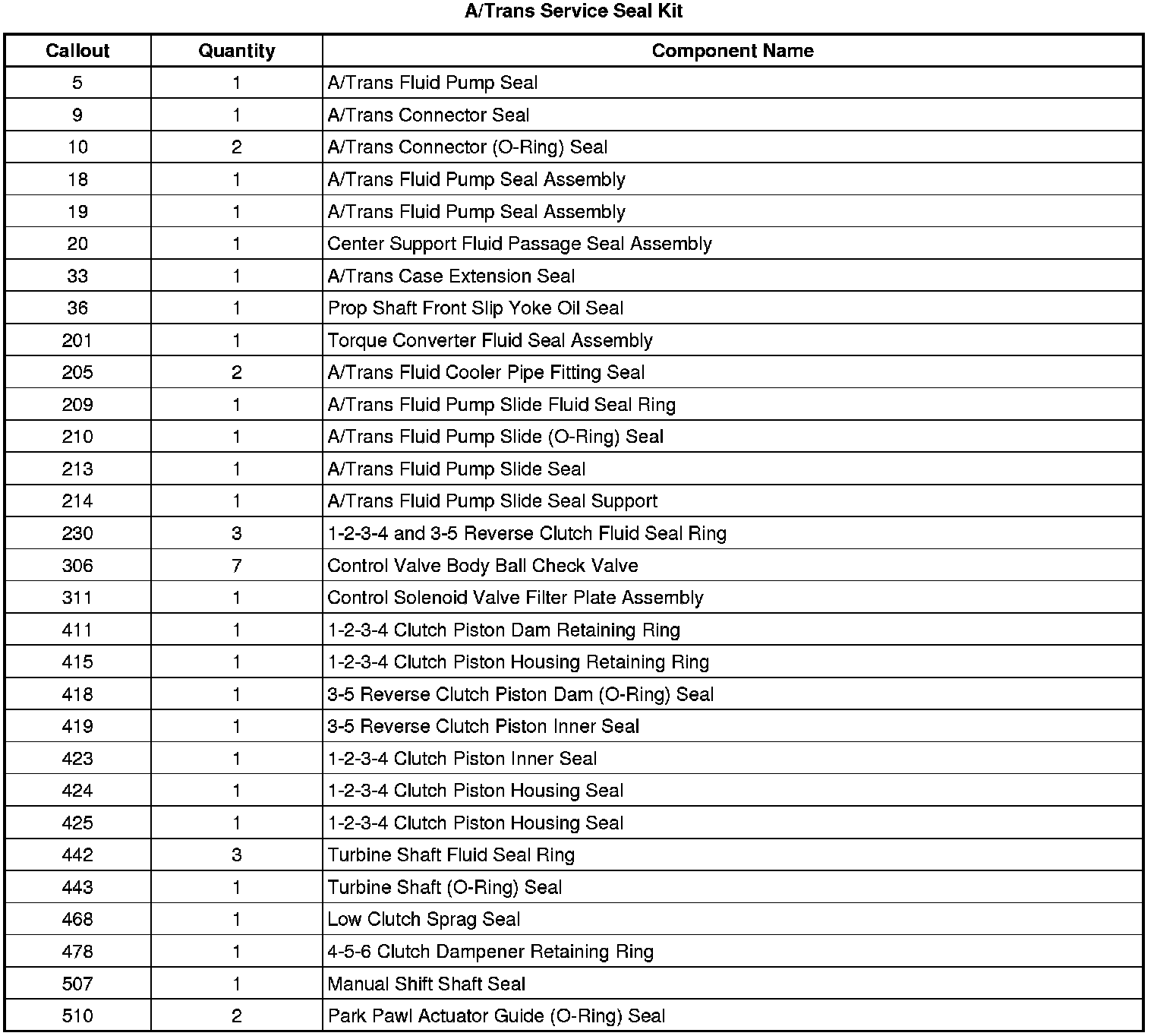A/Trans Service Seal Kit