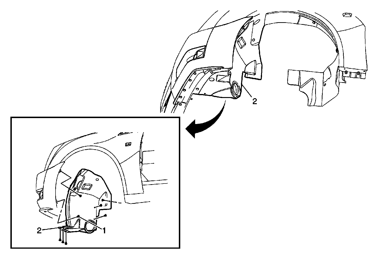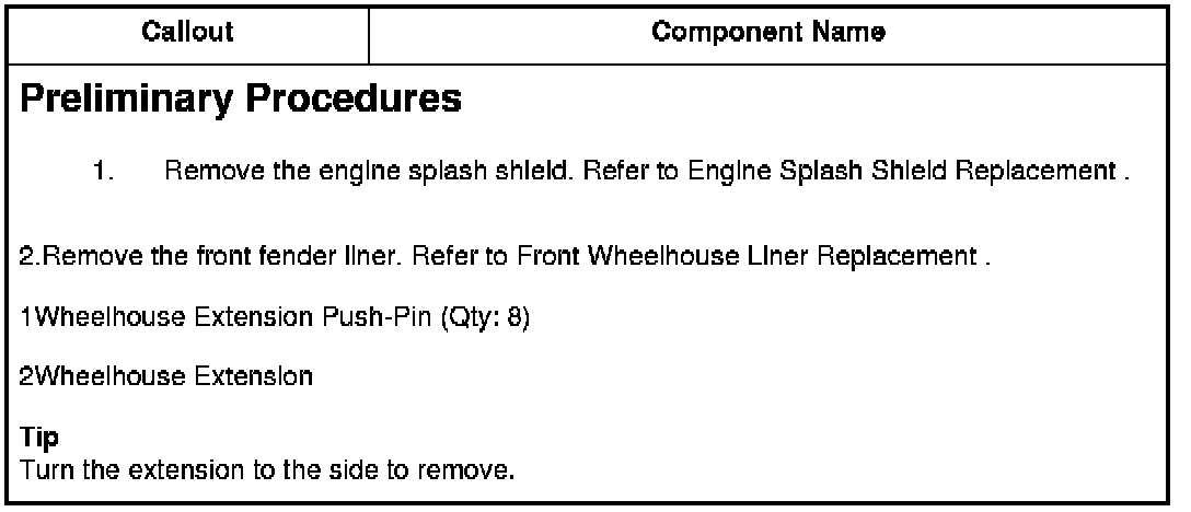 2.Remove the front fender liner. Refer to Front Wheelhouse Liner Replacement Service and Repair.