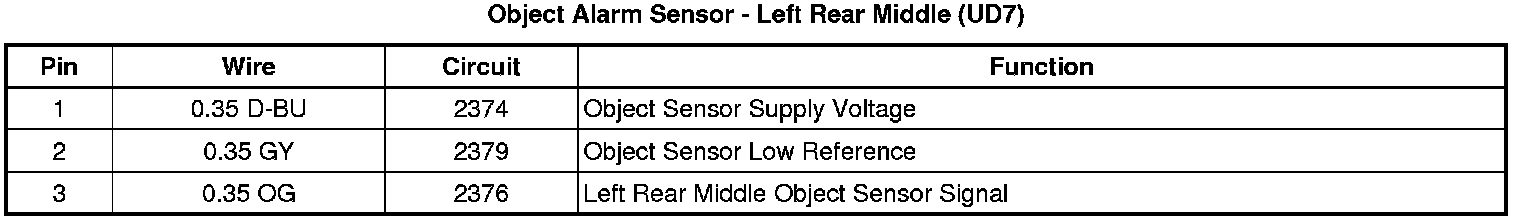 Object Alarm Sensor - Left Rear Middle (UD7)