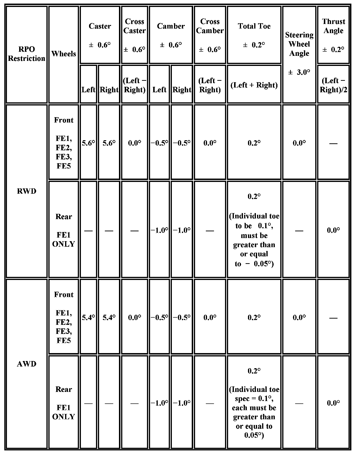 Wheel Alignment Specifications