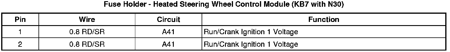 Fuse Holder - Heated Steering Wheel Control Module (KB7 with N30)