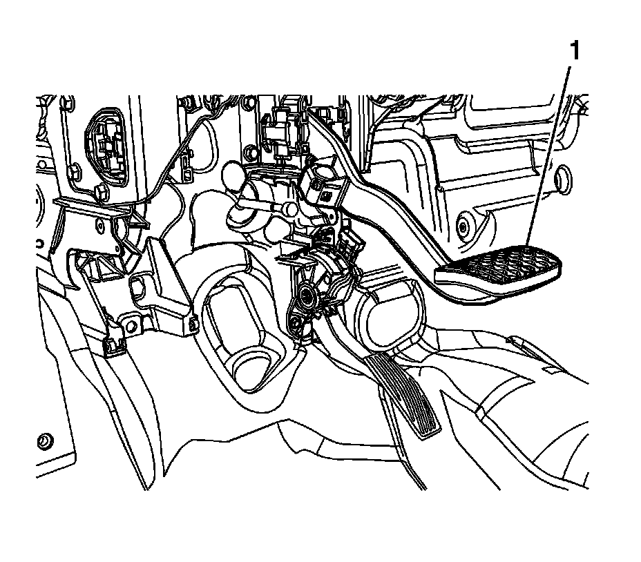 4. Release the brake pedal (1) from the power vacuum brake booster pushrod by lifting the pedal upward.