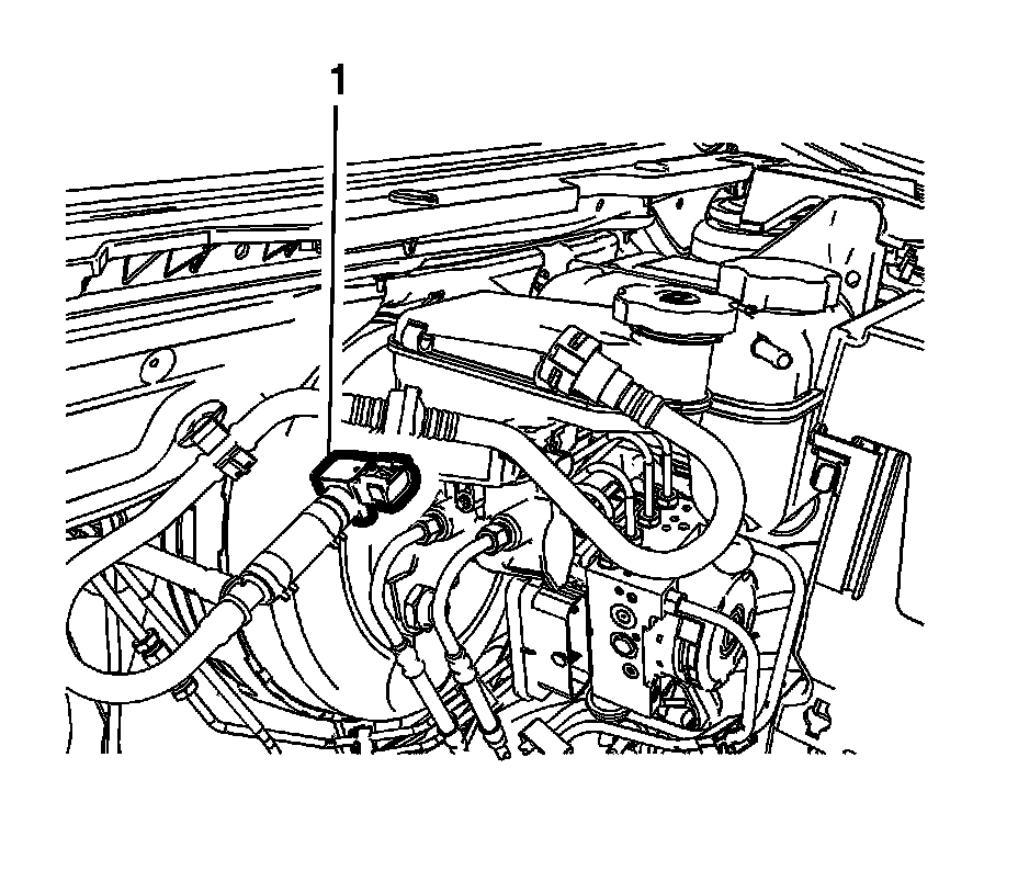 9. Remove the power brake booster vacuum sensor (1) from the power vacuum brake booster.